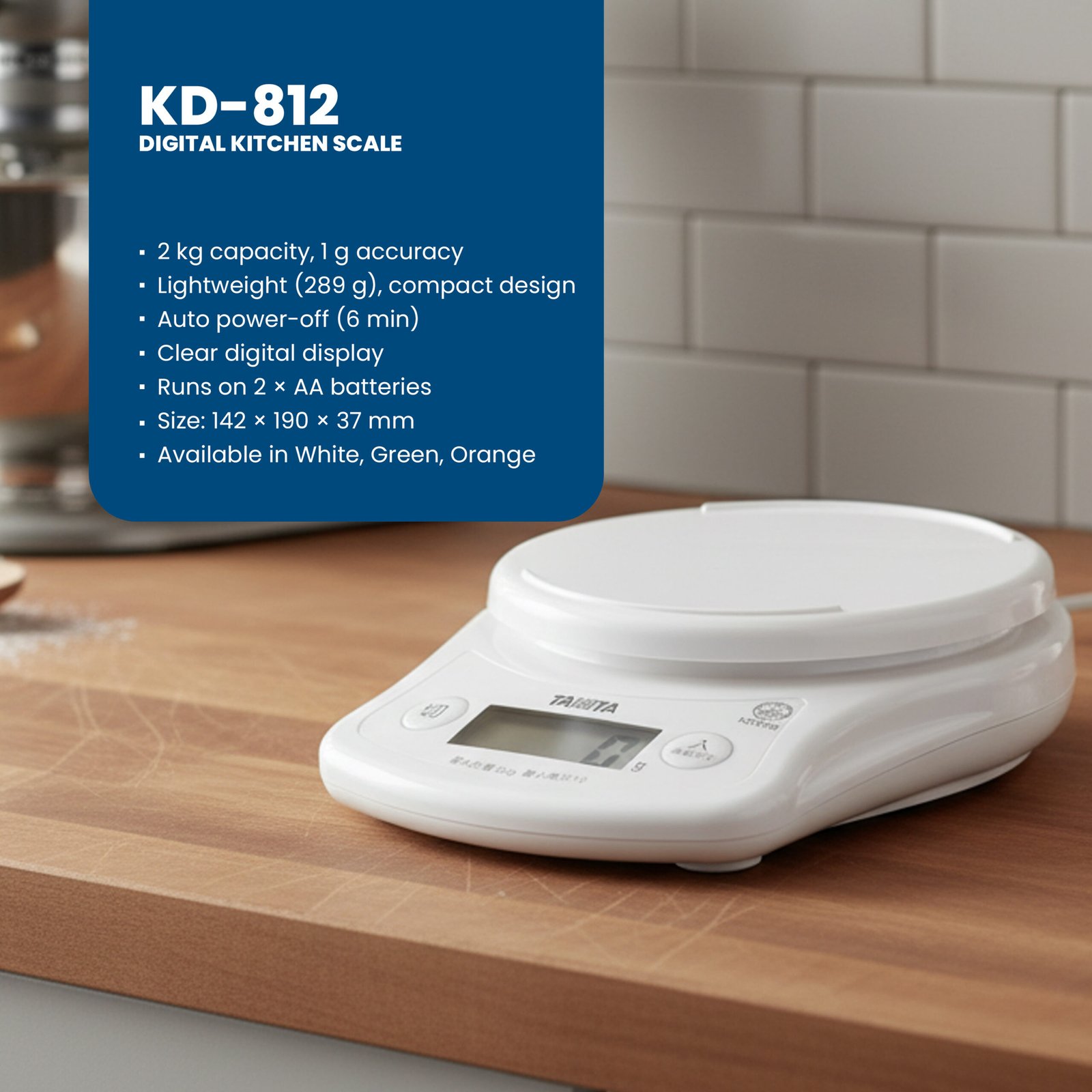 Tanita KD-812 Lightweight Digital Kitchen Scale Compact, Colorful & Practical Ideal for Everyday Use